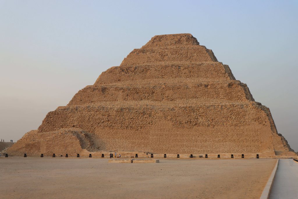 La nécropole de Saqqarah est dominée par le pyramide à degrés du Roi Djéser construite en 2580 avant J.C, c’est le premier tombeau d’un roi sous la forme d’une pyramide.